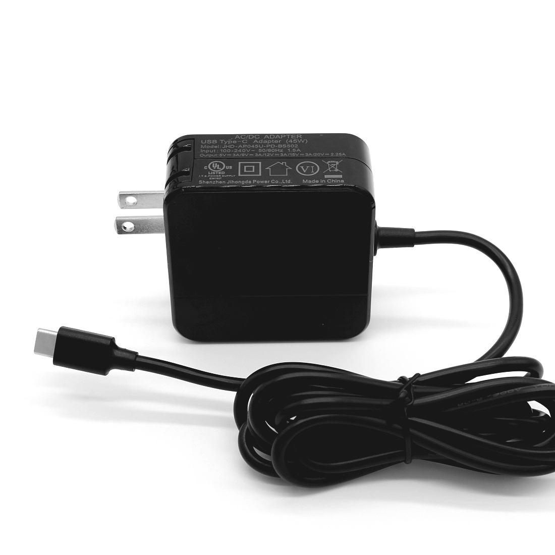 UL 45W-PD Power Adapter,45W UL TYPE-C power adapter-Folding PIN Fast Charging PD charger,Model:JHD-AP045U-PD-BS502,Efficiency level: VI,Output voltage: 5V3A/9V3A/12V3A/15V3A/20V2.25A,Output ripple & noise: 300mVp-p(max),Safety standard:UL60950;FCC Part 15 Subpart B Class B IEC/EN60950;EN55032;EN55024,GB4943.1-2011;GB9254-2008;GB17625.1-2012,Certificate: CUL,CE,UL,FCC,CCC,PSE,VI,ROHS.
