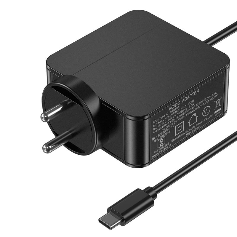 65W系列BIS认证印度规插脚PD USB Type C充电适配器。
